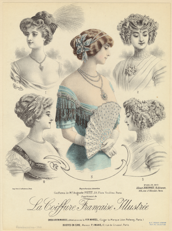 La Coiffure Francaise Illustree is for a la mode 19th-century women in science (and those who emulate them, like myself) from which I've been learning that many of the problems of your life can be solved with a silk low side bow and an ostrich feather and a look-down-and-away expression.